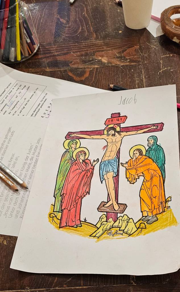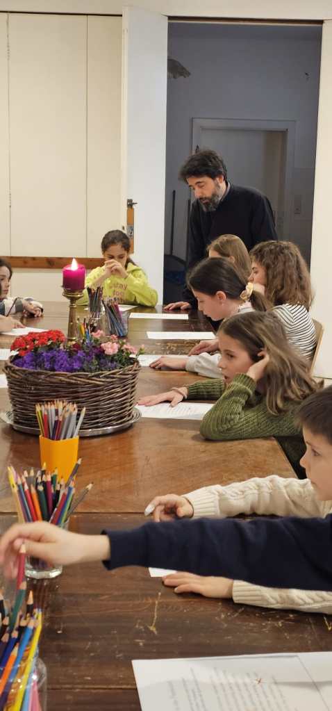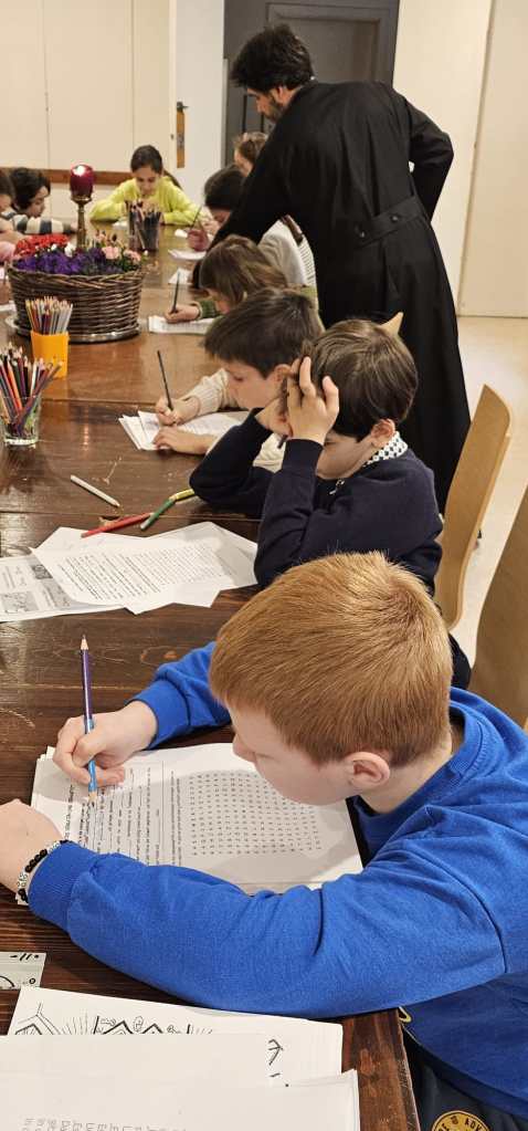 Sâmbătă, 28 martie, copiii Școlii Parohiale care nu au plecat în vacanță, au participat timp de 3 ore, la un atelier intensiv de cateheză aplicată, dedicat drumului de la Florii la Învierea Domnului. Atelierul a cuprins elemente literare, artistice, de cateheză biblică, de interacțiune și manualitate, dar și o incursiune în lumea iconografiei Bisericii noastre.
