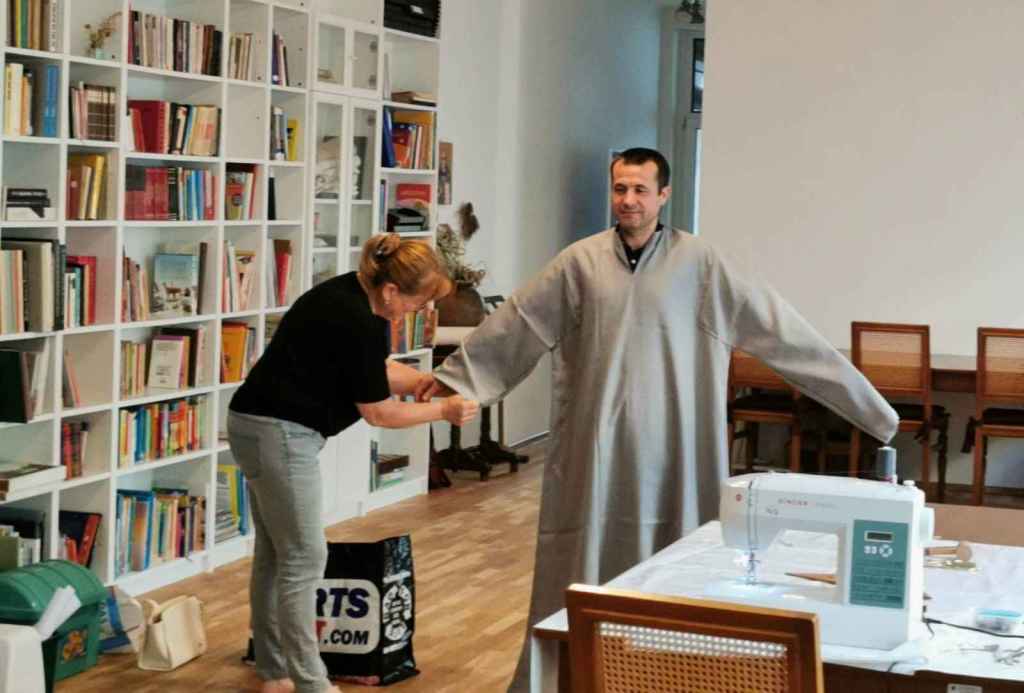 De data aceasta, Ana Plaidl și preoteasa Patricia realizează stihare pentru băieții de altar și dvere pentru noul iconostas. Vor urma acoperăminte pentru Sfânta Masă.