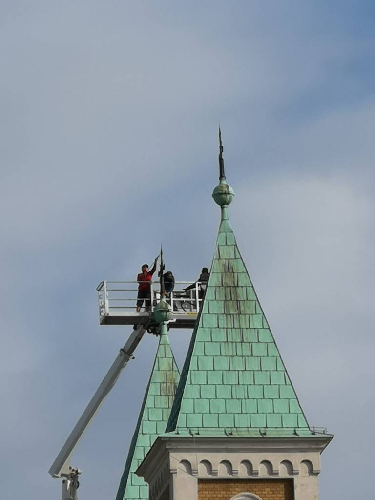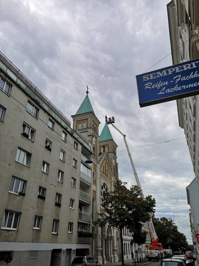 În zilele acestea s-au desfășurat, cu o firmă de specialitate, lucrări de reparație la cele două turnuri ale Bisericii, incluzând cele două cruci impunătoare de pe vârf (aflate la 35 de metri înălțime), acoperișul de cupru al turnurilor și toate suprafețele de tablă de pe margini. Amintim că cele două turnuri – construite în anul 1904 – adăpostesc momentan două clopote, dintre care unul este din anul 1670 (un exemplar de mare preț în toată Viena, ținând cont nu doar de vechimea sa, ci și de tonul redat).