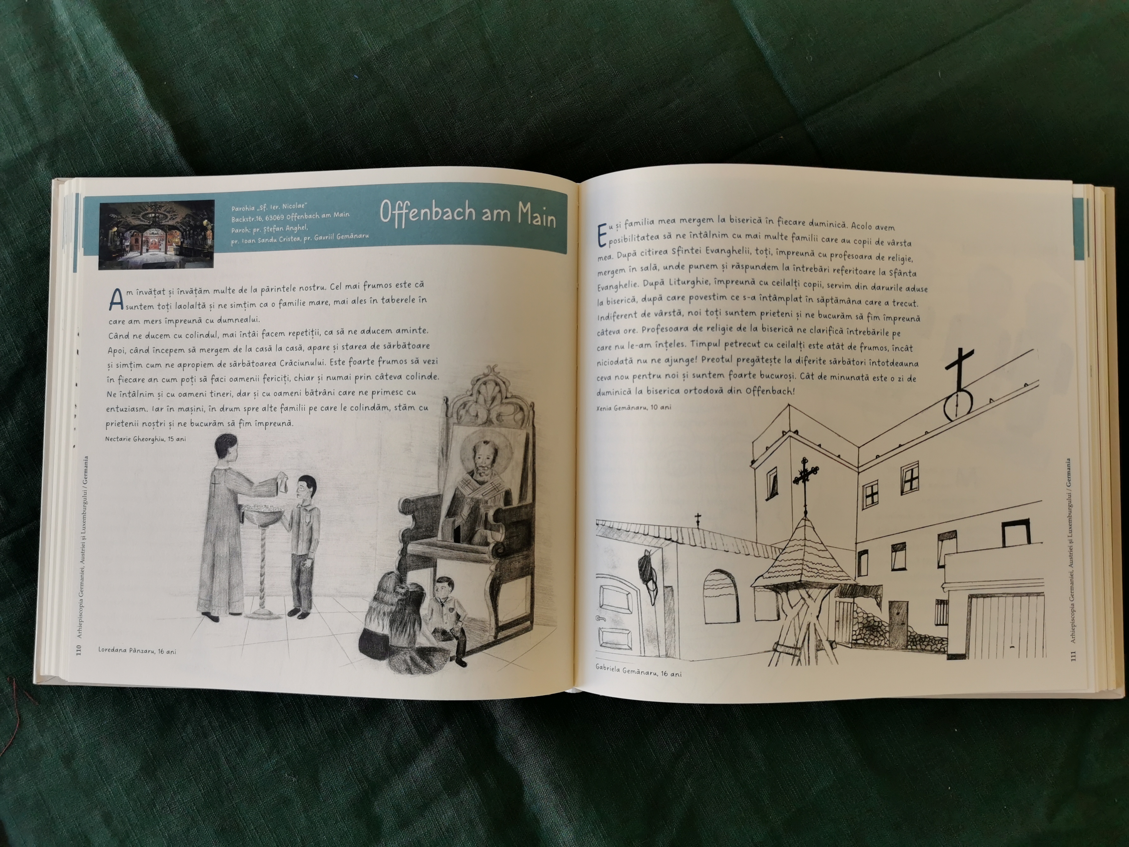 Cei doi ani de pandemie rămân în memoria multora dintre noi ca o perioadă dificilă, plină de restricții. În tăcerea acestei perioade s-au copt însă și lucruri frumoase, inedite. Cartea „Biserica din sufletul meu. Arhiepiscopia Germaniei, Austriei și Luxemburgului văzută prin ochii copiilor“ este unul dintre ele. Editată de preoteasa Patricia Moga (Viena), cu binecuvântarea IPS Serafim, cartea a apărut de curând la Editura Curtea Veche și are forma și calitatea unui album, însumând în total 232 de pagini.