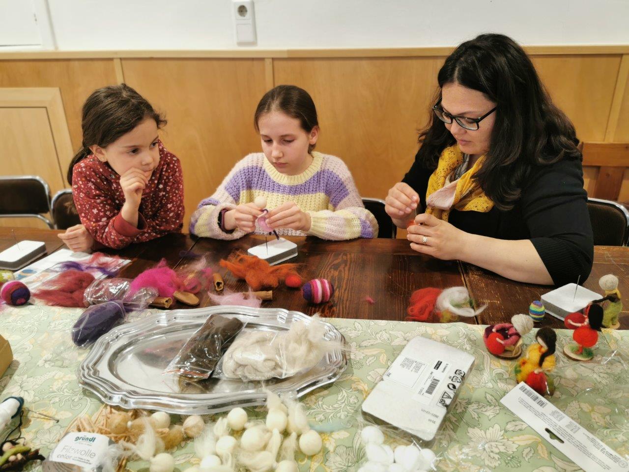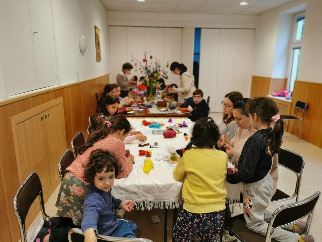 În ajunul Floriilor, la Parohia Sf. Antonie din Viena s-a desfășurat un atelier inedit de confecționat podoabe de Paști din lână naturală împâslită. Copii și adulți au petrecut o zi întreagă împreună, sub îndrumarea doamnelor Nicoleta Lezic, Claudia Șuta și Dana Orelețchi, organizatoarele atelierului.