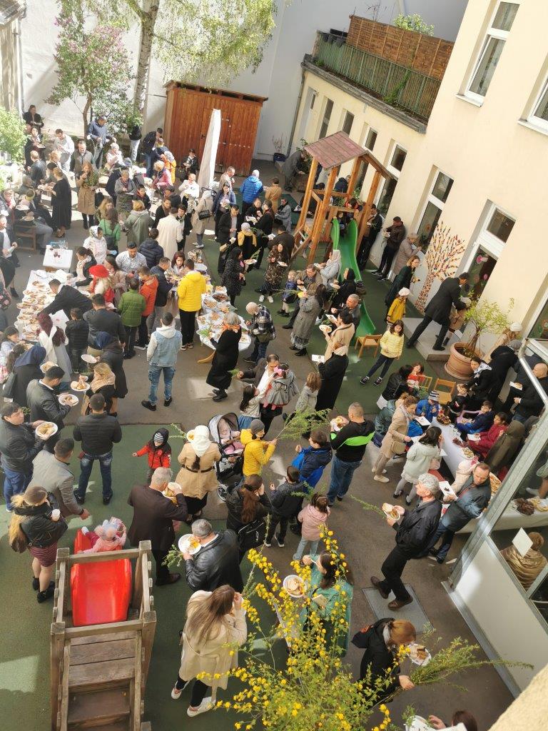 În aceeași zi a avut loc prima agapă după ridicarea restricțiilor de pandemie. Curtea și sala parohială au fost neîncăpătoare pentru toți cei care au dorit să participe și să fie împreună în ziua însorită a Floriilor.