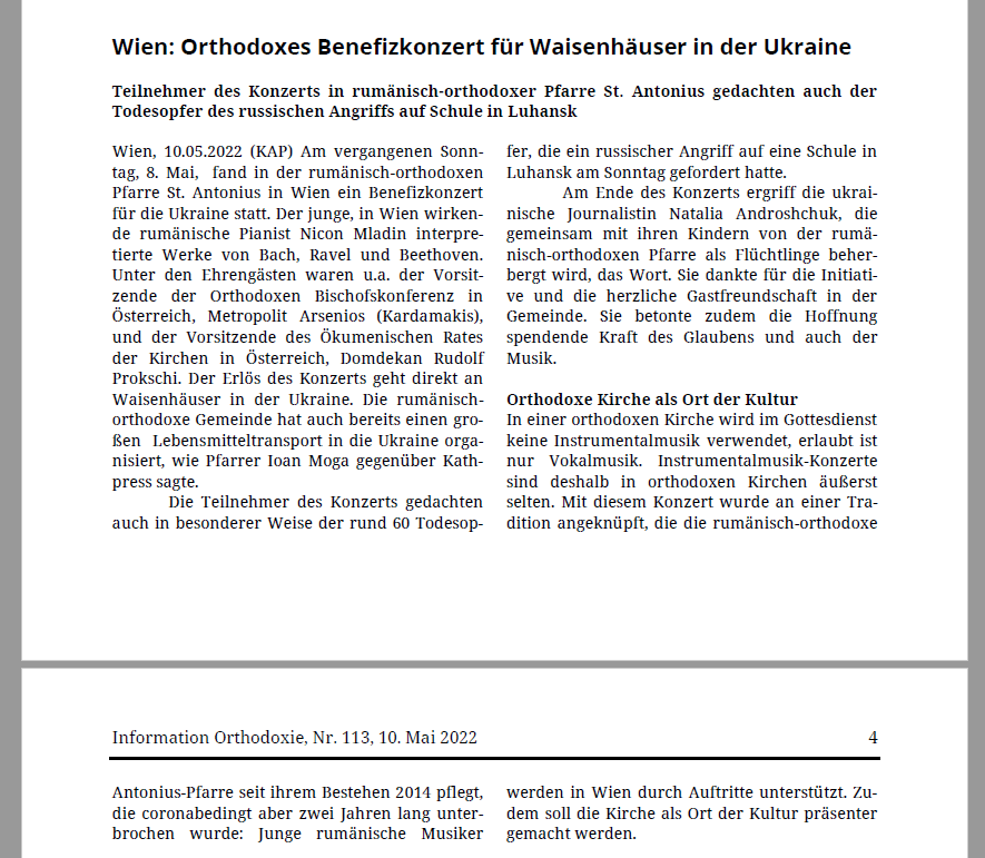 kathpress.at: Orthodoxes Benefizkonzert für Waisenhäuser in der Ukraine https://www.kathpress.at/goto/meldung/2142465/wien-orthodoxes-benefizkonzert-fuer-waisenhaeuser-in-der-ukraine Teilen mit: Dă clic pentru a partaja pe Facebook(Se deschide într-o fereastră nouă) Facebook Dă clic pentru partajare pe WhatsApp(Se deschide într-o fereastră nouă) WhatsApp Dă clic pentru a imprima(Se deschide într-o fereastră nouă) Imprimare Dă clic pentru a trimite o legătură prin email unui prieten(Se deschide într-o fereastră nouă) Email Dă clic pentru a partaja pe X(Se deschide într-o fereastră nouă) X