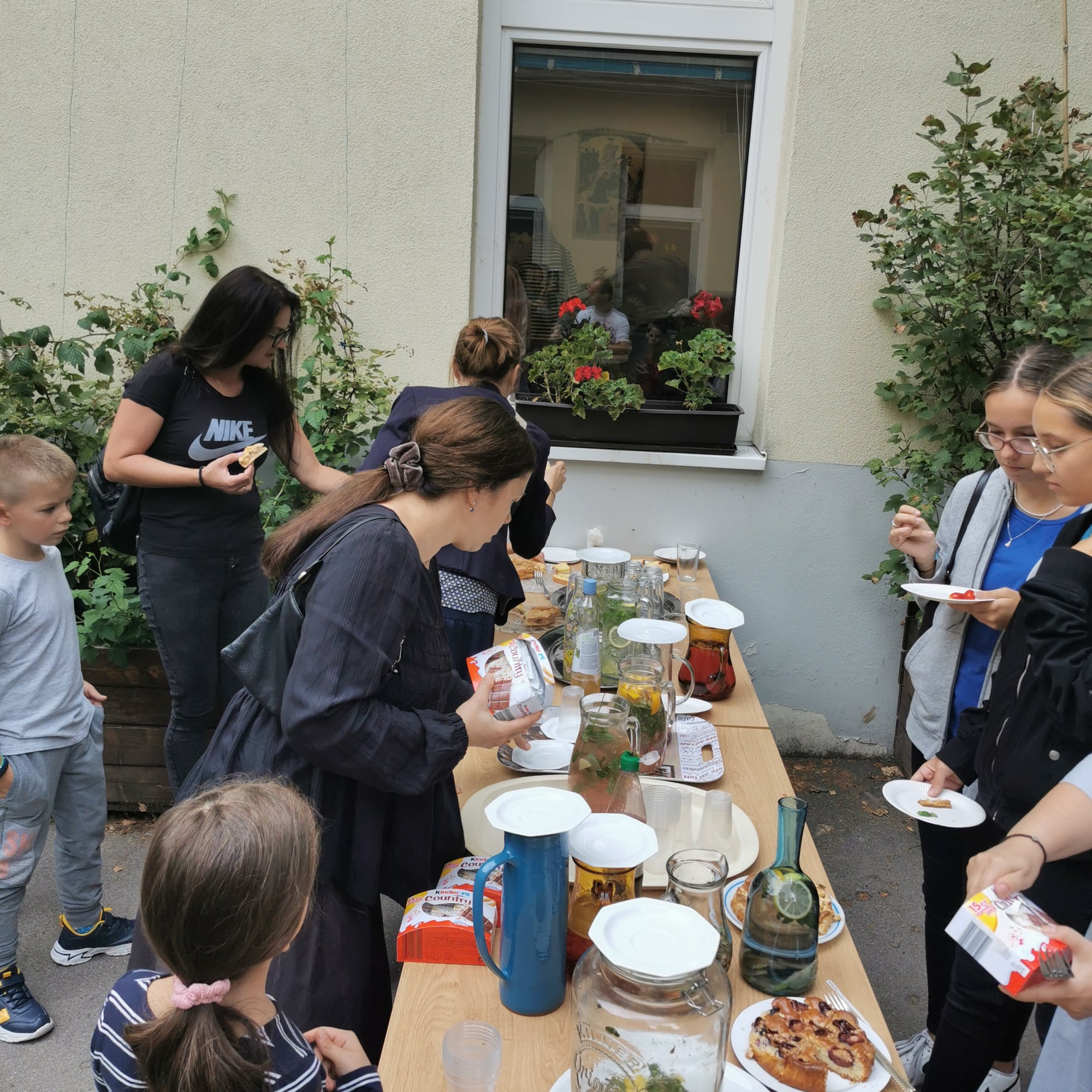 După slujbă, toți copiii și părinții prezenți au fost invitați de preoteasa Patricia, ajutată de un grup de doamne și tinere inimoase, la o „agapă a școlarului”. În cadrul agapei au fost prezentate viitoarele ore și ateliere ale Școlii Parohiale, care vor începe din 24 septembrie și se vor încheia în iunie 2023. Vor fi oferite cursuri și proiecte de cateheză, de limba și literatura română, de teatru, de engleză și franceză, de istorie a României, de sport, de creație, precum și vizite la muzee. Orele sunt conduse de tineri profesioniști, cu pregătire în fiecare domeniu.