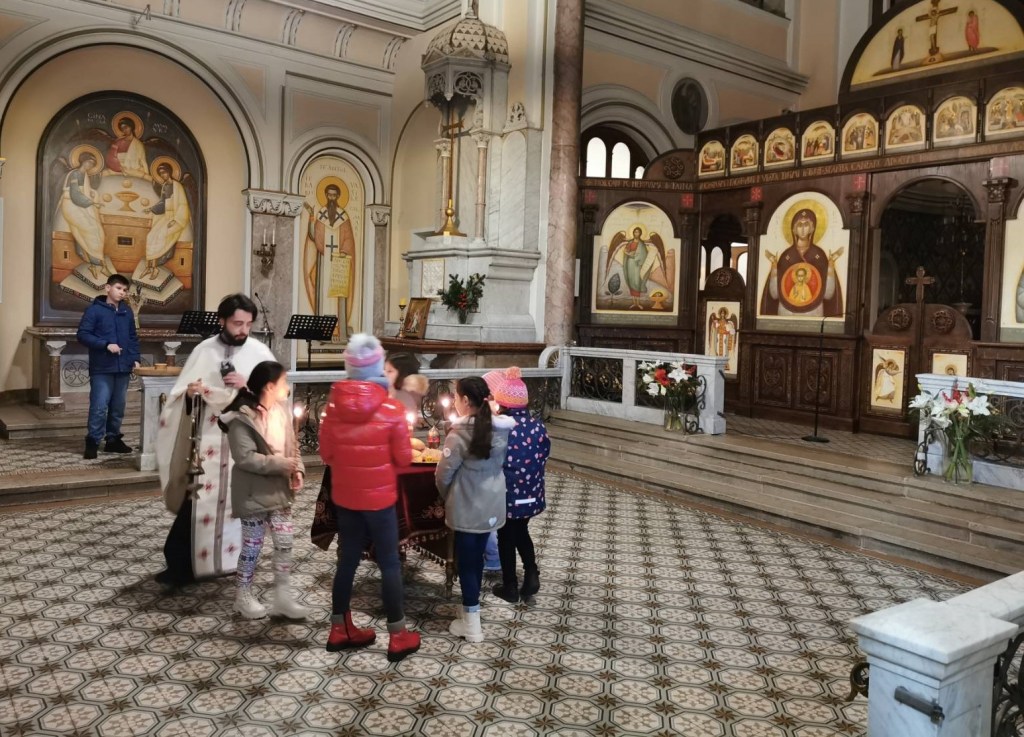 Luni, 5 decembrie, o parte din copiii Școlii Parohiale au continuat repetițiile de colinde.