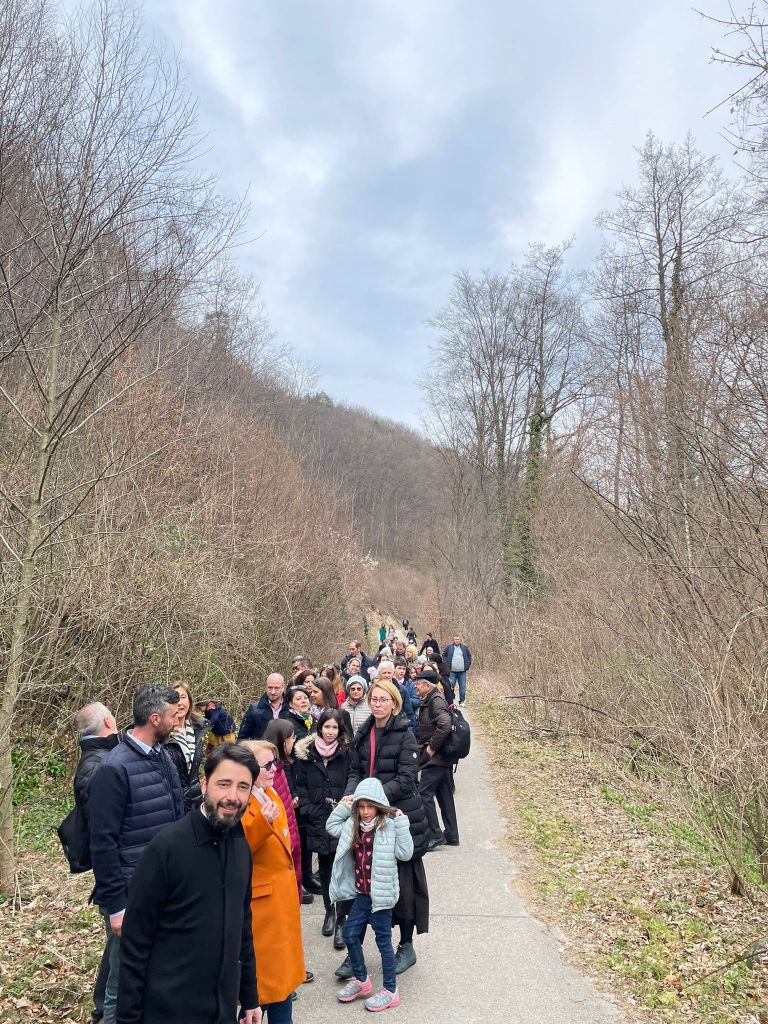 După o agapă generoasă în Sala Parohială și o călătorie memorabilă cu autocarul (o altă parte a pelerinilor venind cu mașini proprii), și după o drumeție prin pădurea și câmpiile primăvăratice din jurul mănăstirii, grupul de pelerini a săvârșit, în frunte cu pr. protopop Ioan Moga, acatistul Sfintei Cruci, fiecare credincios putând să venereze individual Sfânta Cruce. În dar, pelerinii au primit câte o cruciuliță de lemn adusă de o enoriașă din Țara Sfântă. La slujbă s-a alăturat grupului și pr. Cristian Ioan Popa.