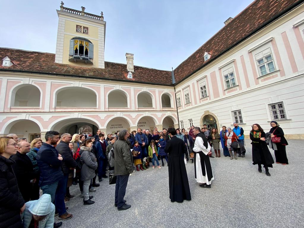 Duminică, 19 martie, de Duminica Sfintei Cruci, peste 100 de enoriași ai Parohiei Sf. Antonie cel Mare din Viena au făcut un pelerinaj la mănăstirea cisterciană Heiligenkreuz din apropiere de Viena, reluând astfel o tradiție începută înainte de perioada pendemică. Mănăstirea adăpostește, încă de la întemeierea ei, o parte din lemnul Sfintei Cruci: prima, donată odată cu întemeierea mănăstirii în anul 1133 s-a pierdut în sec. 17, a doua („cea mai mare bucată din lemnul Sfintei Cruci la nord de Alpi“), a fost adusă de la Ierusalim în anul 1182 de Leopold al 5-lea, supranumit și Virtuosul. Mănăstirea este, la ora actuală, cel mai activ centru monastic – teologic și spiritual – din Austria.