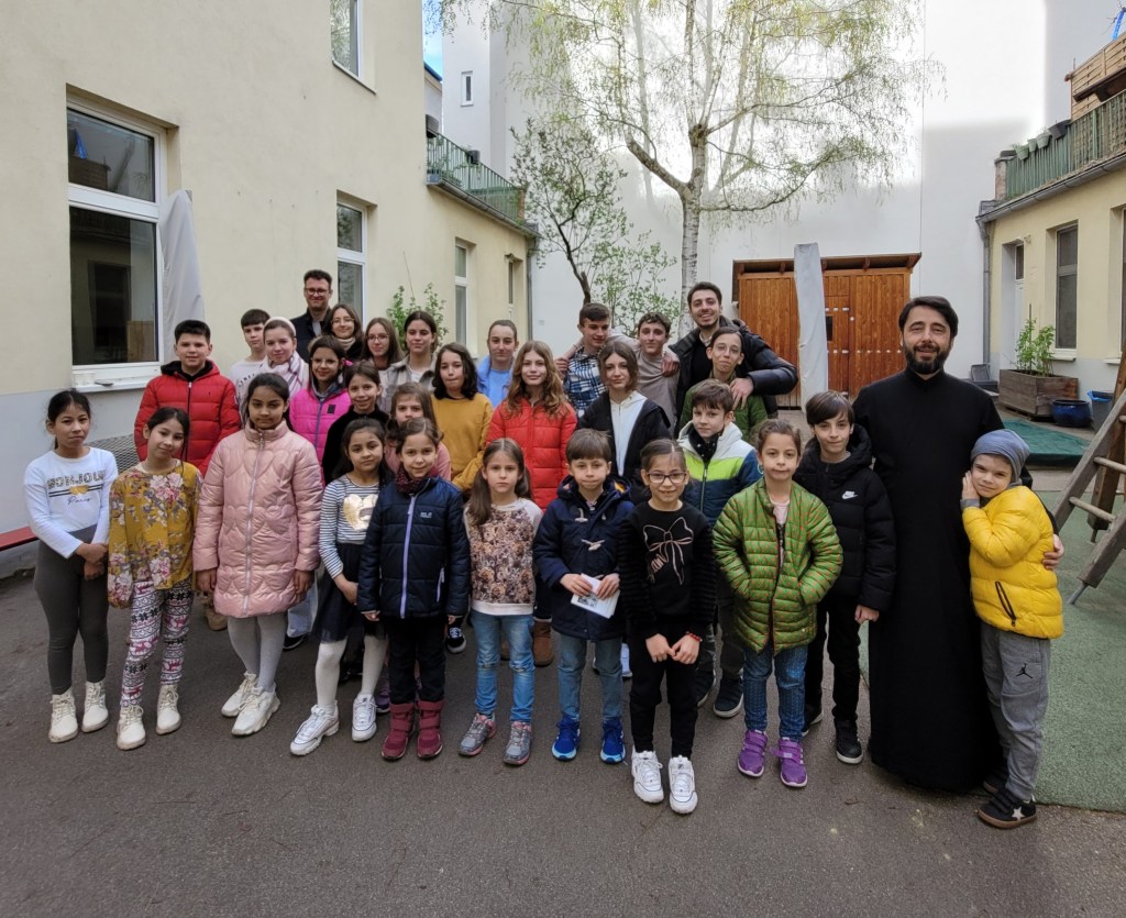 În cadrul Școlii Parohiale, copiii și tinerii Parohiei Sf. Antonie cel Mare din Viena au avut sâmbătă, 1 aprilie, un program deosebit. Alături de părintele Ioan Moga, ei au descoperit lumea catacombelor romane și a simbolurilor folosite de primele generații de creștini și păstrate până în ziua de astăzi în iconografia ortodoxă: monograma Mântuitorului, peștele, corabia, ancora, păunul, pasărea Phoenix, Păstorul, pomul, porumbelul, precum și simbolurile celor patru Evangheliști. Participanții au cercetat locurile scripturistice unde aceste simboluri își pot găsi tâlcul. De asemenea, ei au discutat despre sensul simbolului în Biserică, dar și în lumea contemporană. Grupa de copii de școală generală (6-9 ani) s-a apropiat de înțelesul sărbătorii Floriilor, prin intermediul unui colind, a ghicitorilor și a poeziei.