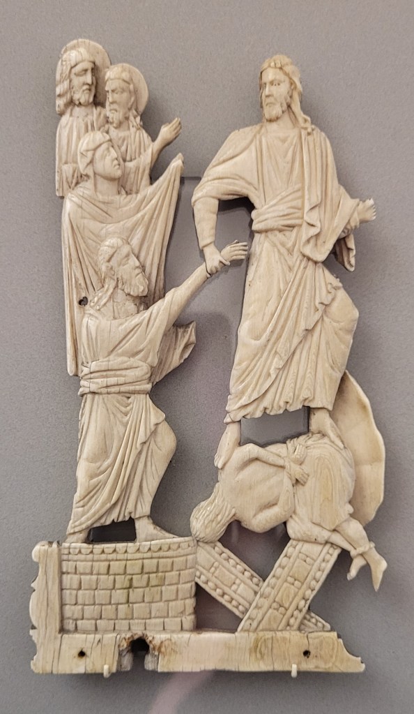 Pogorârea la iad – Constantinopol, sec. 10 – fragment, icoană în fildeș (Bode-Museum Berlin)