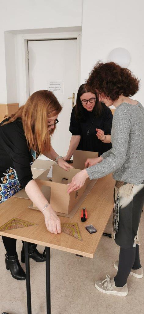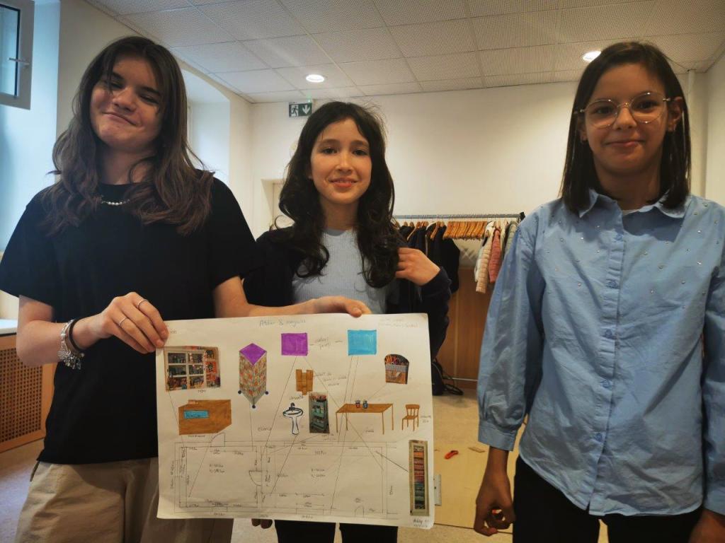 Die große Gruppe (aufgeteilt in 7 Teams) hatte die Aufgabe, ein Relief und einen Innenarchitekturplan für zwei Räume der Pfarrschule zu erstellen. Alle 7 Teams hatten erstaunlich schöne, kluge und gut umgesetzte Ideen, die wir bei der Gestaltung dieser Räume berücksichtigen werden!