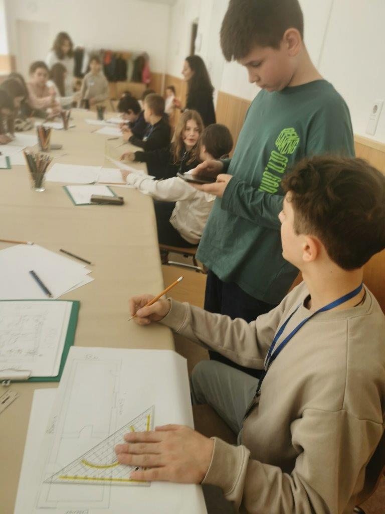 Grupa mare (împărțită în 7 echipe) a avut misiunea de a face un releveu și un plan de amenajare interioară pentru două spații dedicate Școlii Parohiale. Toate cele 7 echipe au venit cu idei extraordinar de frumoase, inteligente și bine aplicate, de care vom ține cont în amenajarea acestor spații!