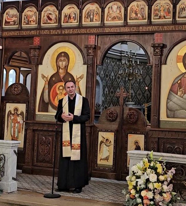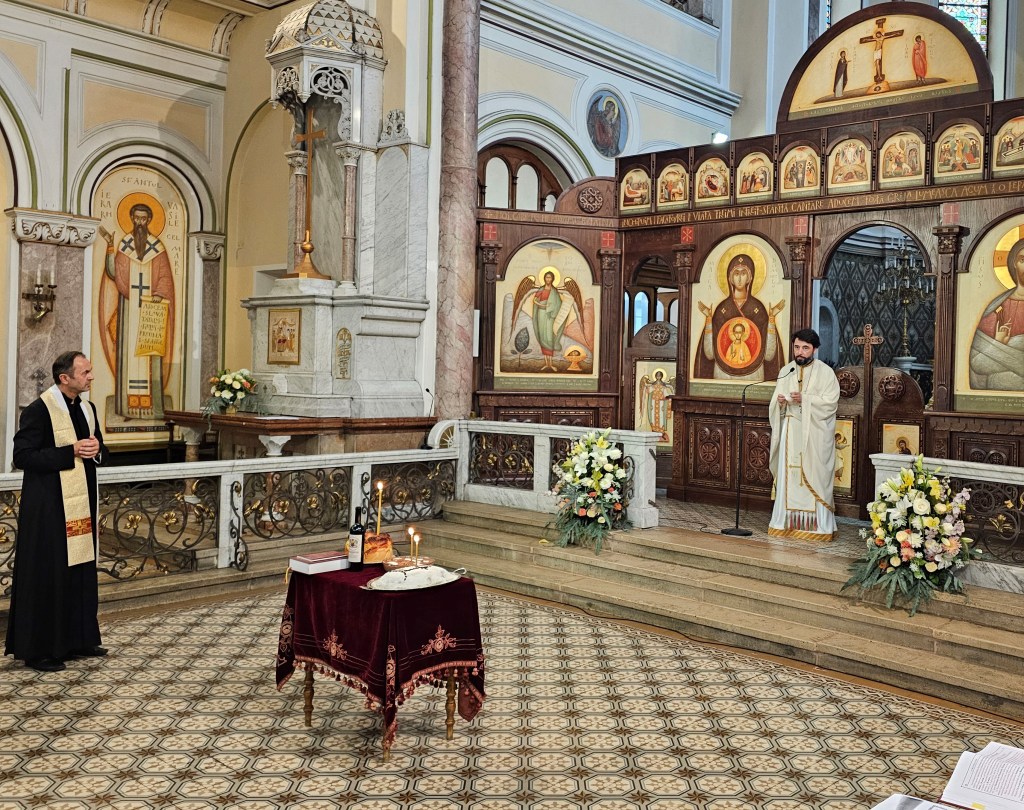 Sora Laetitia a transmis calde salutări din partea maicii-superioare din Graz, a împărtășit amintiri legate de vechea mănăstire și a mulțumit parohiei ortodoxe române pentru grija, vivacitatea și dragostea cu care a redat viață acestei Biserici. Preotul Martin Rupprecht a reînnoit aprecierea pe care o are față de preotul Ioan, preoteasa Patricia și toți enoriașii, pentru tot efortul depus în ultimii 9 ani de la preluarea bisericii, pentru renovarea și transformarea ei conform tradiției bizantine (iconostasul și pictura murală) și pentru toate activitățile caritativ-educaționale desfășurate. El a transmis totodată un salut călduros din partea cardinalului Christoph Schönborn. Pr. Ioan Moga a explicat că, în cursul pregătirii unei monografii istorice privind sfântul locaș, a reușit să primească din arhivele ordinului informații importante privind începuturile Bisericii.