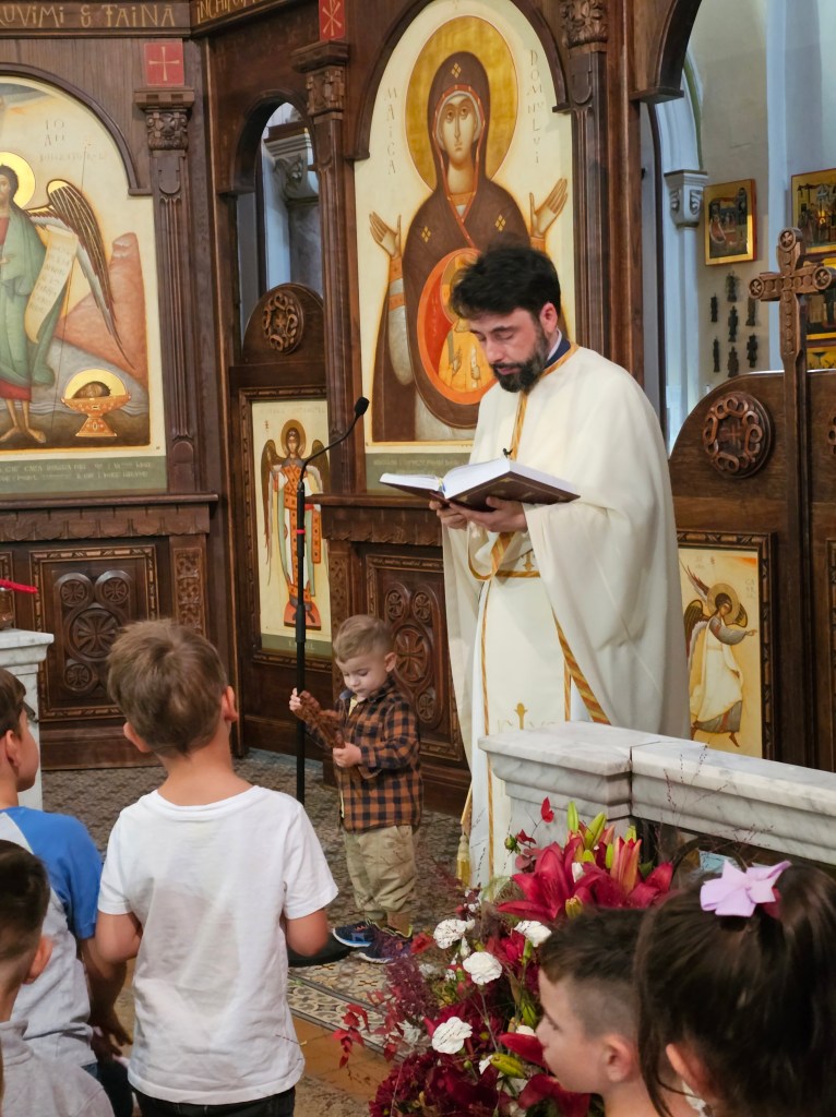 După slujba de binecuvântare a elevilor pentru un bun început, în sala parohială s-au adunat foarte mulți copii și părinți cărora li s-a prezentat un videoclip fotografic realizat de Dragoș Parasca cu o selecție din nenumăratele activități și proiecte desfășurate de-a lungul anilor. Totodată li s-a povestit despre programul exact de care se vor putea bucura începând deja cu săptămâna viitoare (9 septembrie 2023).