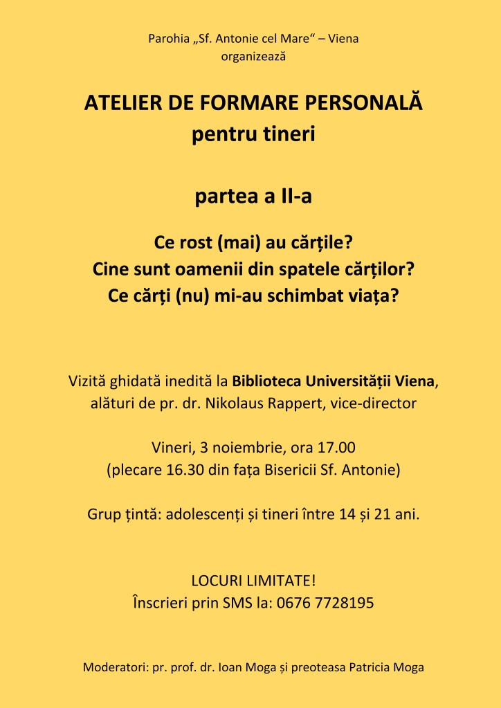 Atelier de formare personală, partea a 2-a (pt. tineri) / Workshop für Persönlichkeitsentwicklung – für Jugendliche und junge Erwachsene (2. Teil)
