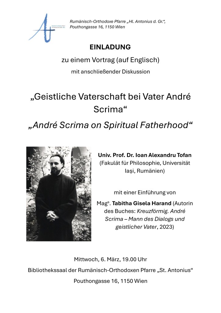 Einladung: Vortrag über V. André Scrima https://www.kathpress.at/goto/meldung/2351454/wien-veranstaltung-ueber-orthodoxen-kumene-moench-andr-scrima Teilen mit: Dă clic pentru a partaja pe Facebook(Se deschide într-o fereastră nouă) Facebook Dă clic pentru partajare pe WhatsApp(Se deschide într-o fereastră nouă) WhatsApp Dă clic pentru a imprima(Se deschide într-o fereastră nouă) Imprimare Dă clic pentru a trimite o legătură prin email unui prieten(Se deschide într-o fereastră nouă) Email Dă clic pentru a partaja pe X(Se deschide într-o fereastră nouă) X