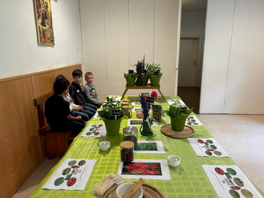Sâmbătă, 1 iunie, cei 27 de copii participanți la activitatea propusă de Școala parohială de la Parohia ”Sf. Antonie cel Mare” au avut parte de o fascinantă introducere în lumea plantelor. Ghid le-a fost dna farmacist dr. Lavinia Albertino care, în prima parte a activității, a prezentat copiilor noțiuni generale despre plantele medicinale și aromatice, recoltarea, uscarea și păstrarea lor, dar mai ales despre rolul terapeutic al acestora și al produselor derivate din ele. Prezentarea a evidențiat vechimea folosirii plantelor medicinale și aromatice în tratarea diferitelor afecțiuni și importanța acestora în viața oamenilor, amintind de asemenea și frecvența menționării acestora în Sfânta Scriptură.