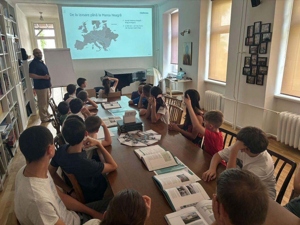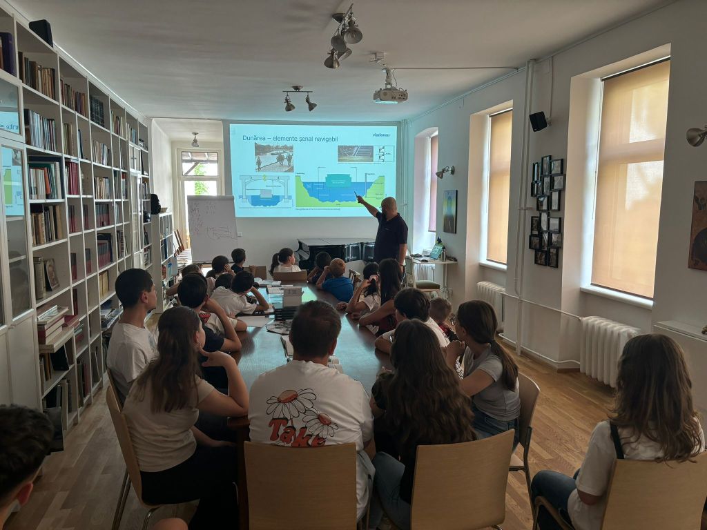Copiii participanți și-au exprimat bucuria începerii binemeritatei vacanțe, dar și-au manifestat interesul și pentru tema propusă pentru final de program la Școala parohială: navigația pe Dunăre. Conduși de domnul consilier Cristian Chiriță (mulți ani comandant de vas pe mări și oceane, în prezent senior expert la Via Donau) în fascinanta lume a transportului pe Dunăre, copiii au „navigat‟ printre noțiuni de geografie, date statistice (legate de lungimea fluviului, statele pe care le traversează, debitul său etc.), hidrologie și transport fluvial. Copiii au descoperit astfel cât de importantă este Dunărea în calitatea ei de rută de transport, care sunt modalitățile de transport pe acest fluviu, cât este de eficient, practic și nepoluant acest tip de transport comparativ cu cel rutier, aerian și feroviar. Copiilor le-au fost explicate și noțiuni tehnice de funționare a unei ecluze, a unei hidrocentrale, modul de navigare în amonte și în aval.