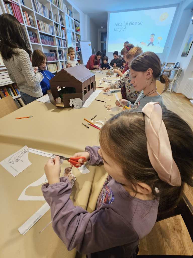 Atelierul a avut ca temă „Arca lui Noe“ ca izvor de inspirație pentru solidaritatea cu toată făptura (ecologie) și cu toți oamenii care nădăjduiesc în mila lui Dumnezeu. În cadrul atelierului, copiii au descoperit, printre altele, sensurile actuale ale episodului biblic, au confecționat o arcă și au populat-o treptat cu multe vietăți, iar, la sfârșit, au discutat despre simbolul inițial al curcubeului, ca semn natural al vechiului legământul dintre Dumnezeu și om.