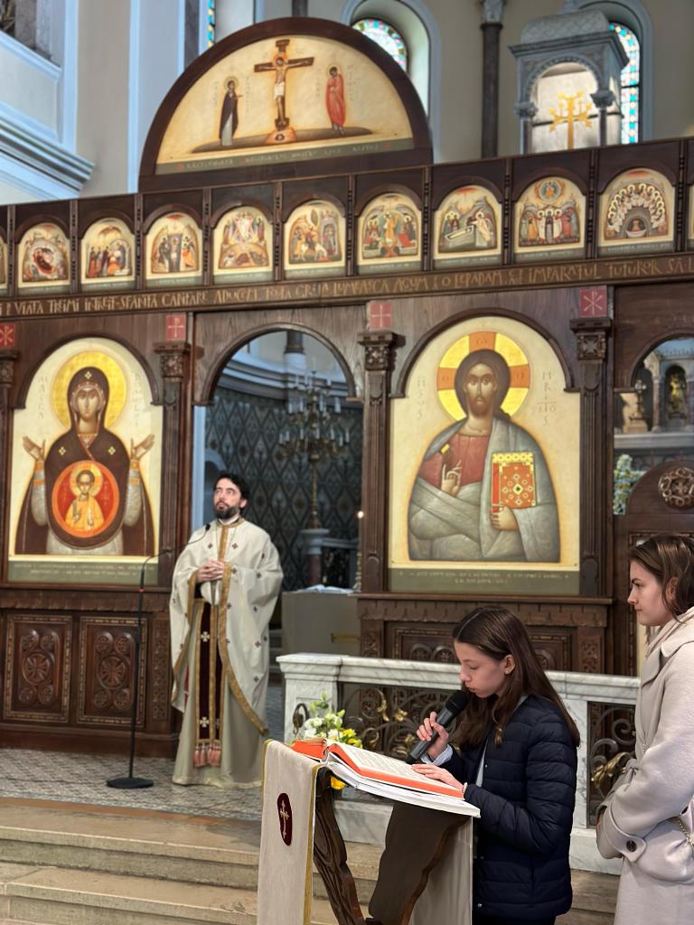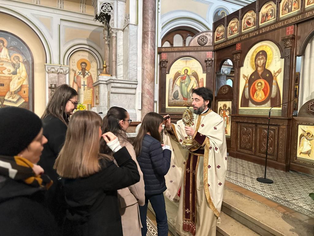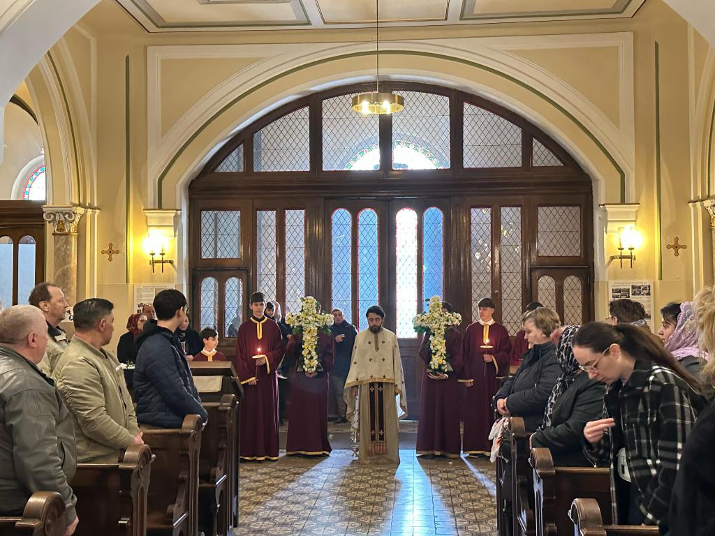 După Utrenie și Sf. Liturghie, credincioșii s-au putut închina la un fragment din lemnul Sfintei și de viață făcătoarei Cruci a Domnului nostru Iisus Hristos, odor de mare preț care aparține Bisericii noastre, iar apoi au participat la o agapă pregătită exclusiv de tinerii parohiei.