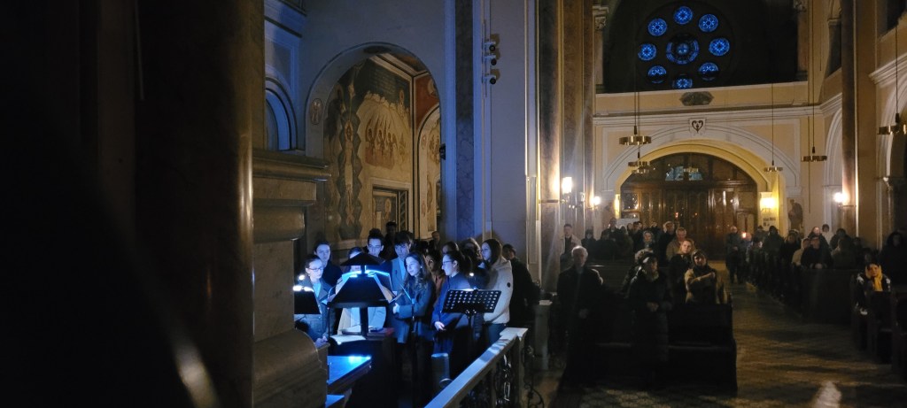 Bei Montagabend-Gottesdienst der Karwoche haben die Jugendlichen unserer Gemeinde gesungen und gelesen. Der Chor 2 besteht in unserer Gemeinde ausschließlich aus Mädchen und jungen Frauen (Gymnasiastinnen oder Studentinnen). Der Chor 2 singt einmal im Monat allein den gesamten Morgengottesdienst und die gesamte Sonntagsliturgie und zweimal im Monat im Wechselgesang mit dem Chor 1. Bei dem Gottesdienst am 06.04. schlossen sich ihnen auch einige der jungen Messdiener an. Auch in der weiteren Karwoche und zu Ostern wird der Chor 2 den liturgischen Gesang bereichern.