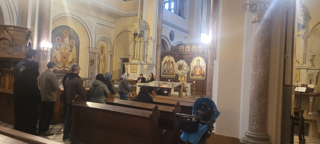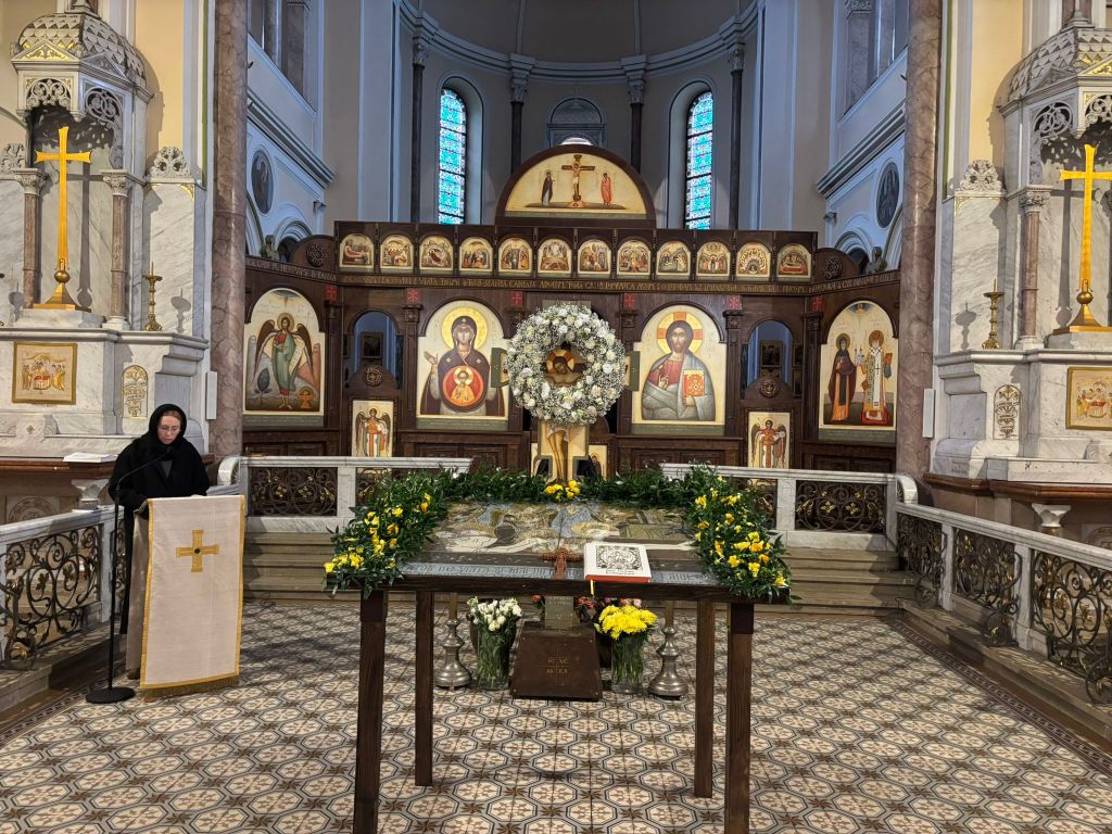 wird in der Kirche ununterbrochen aus dem Neuen Testament gelesen, während die Menschen kommen und vor dem Heiligen Epitaphion beten.