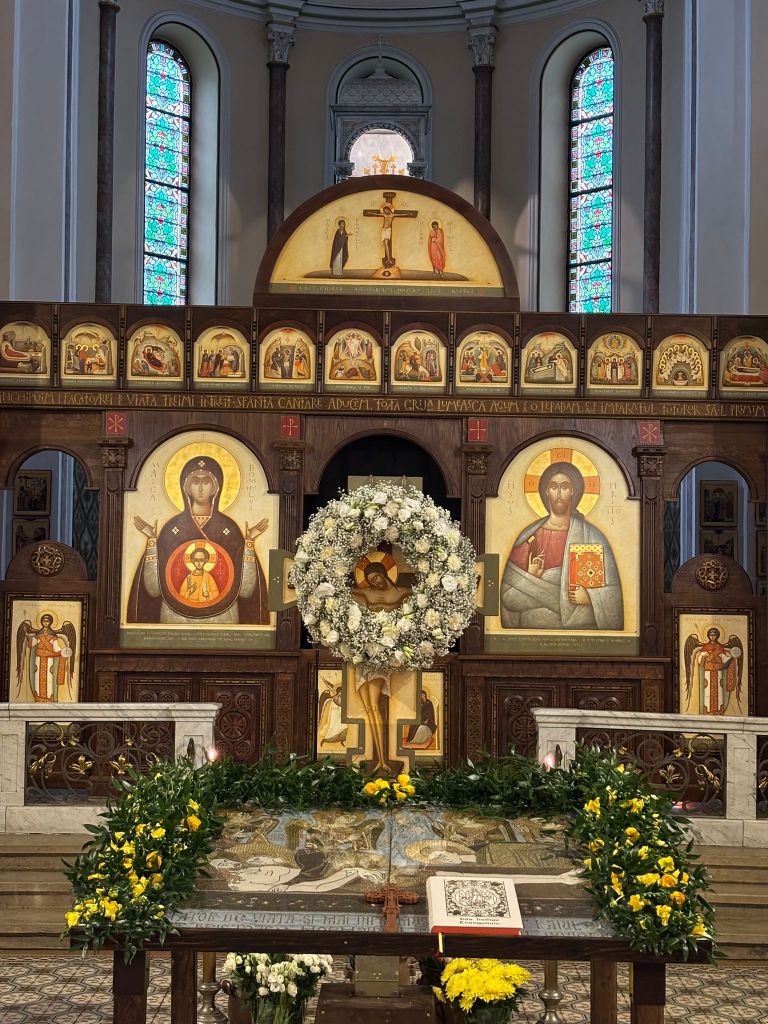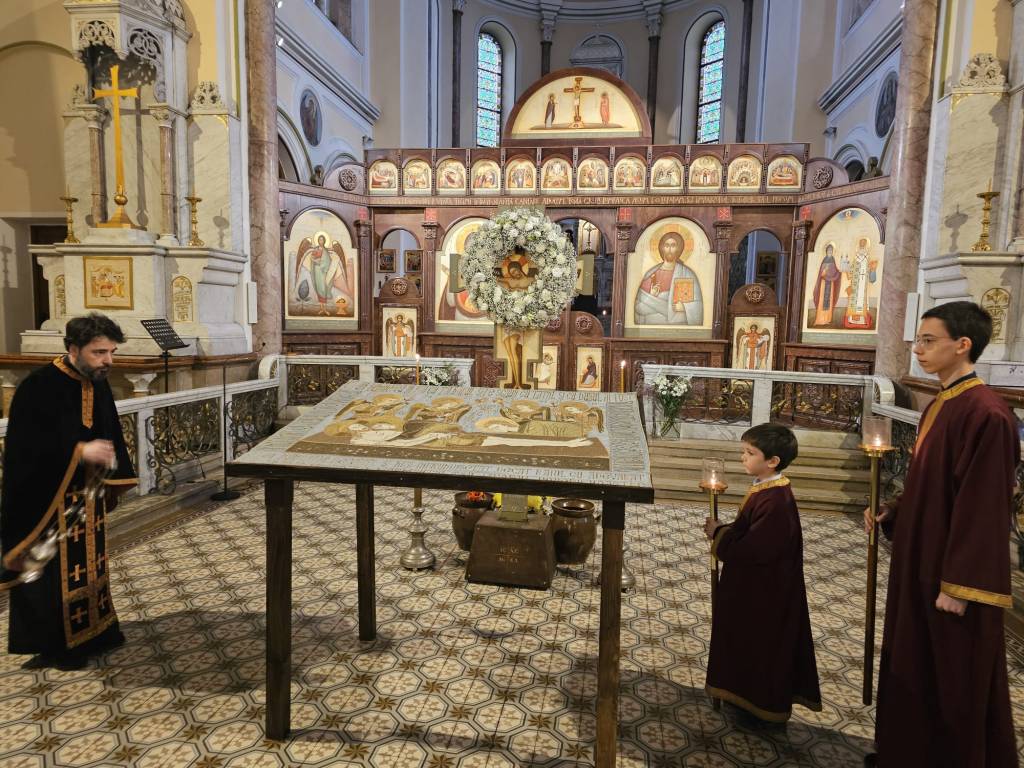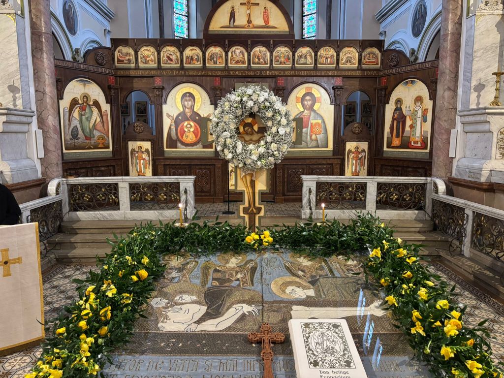 Nach den Königlichen Stunden und der Vesper mit dem Aufstellen des Heiligen Epitaphions (Darstellung der Grablegung Christi)