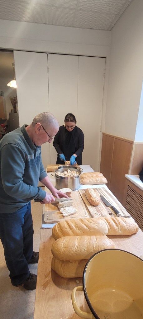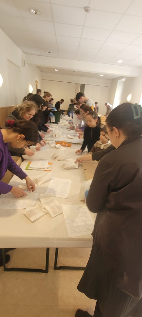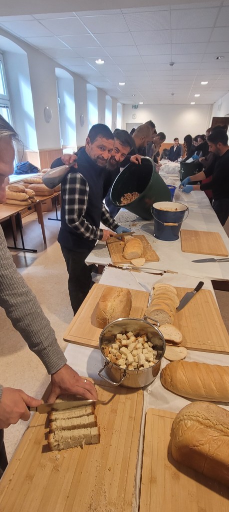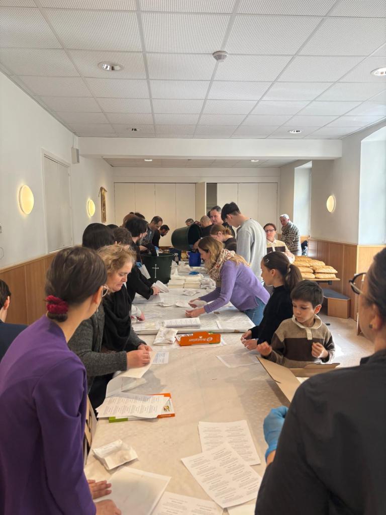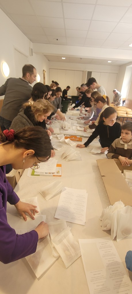 Voluntariat în Sâmbăta Mare (în pofida oboselii acumulate în ultimele zile), pentru pregătirea a peste 3000 de pliculețe cu pâine sfințită stropită cu vin („paști”).