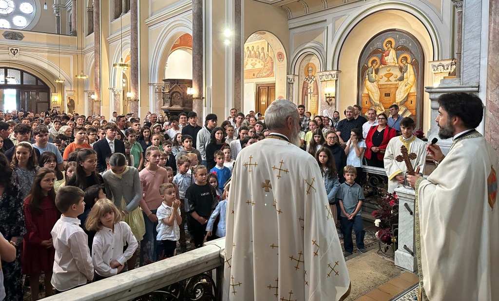 Copiii Școlii Parohiale s-au bucurat și de vizita Înaltpreasfințitului Mitropolit Arsenios al Austriei, președintele Conferinței Episcopilor Ortodocși din Austria, care le-a transmis un cuvânt de prețuire și de îndemn creștinesc.