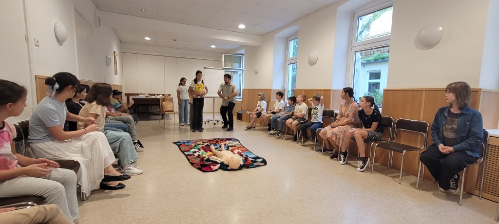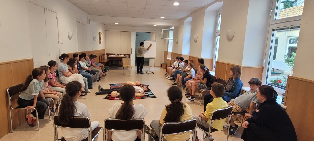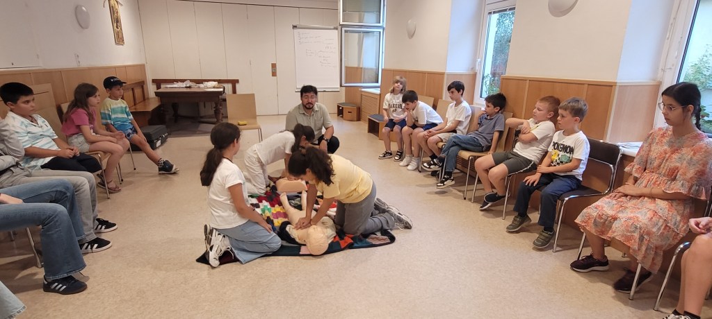 27 de copii școlari au participat sâmbătă după amiază la un Curs de prim ajutor, în cadrul Școlii Parohiale Sf. Antonie din Viena, organizată și coordonată de preoteasa Patricia Moga.
