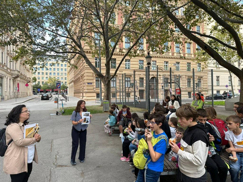 În frumoasa după-amiază a zilei de sâmbătă, 7.10.2023, aproximativ 30 de copii cu vârste cuprinse între 9 și 16 ani s-au aventurat într-un periplu educativ în centrul Vienei. Scopul a fost descoperirea locurilor unde câteva dintre personalitățile culturii românești au locuit, studiat sau activat de-a lungul timpului.