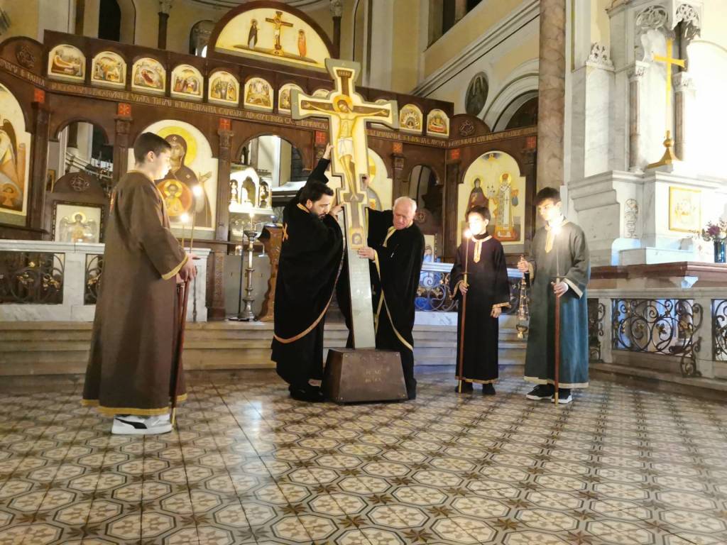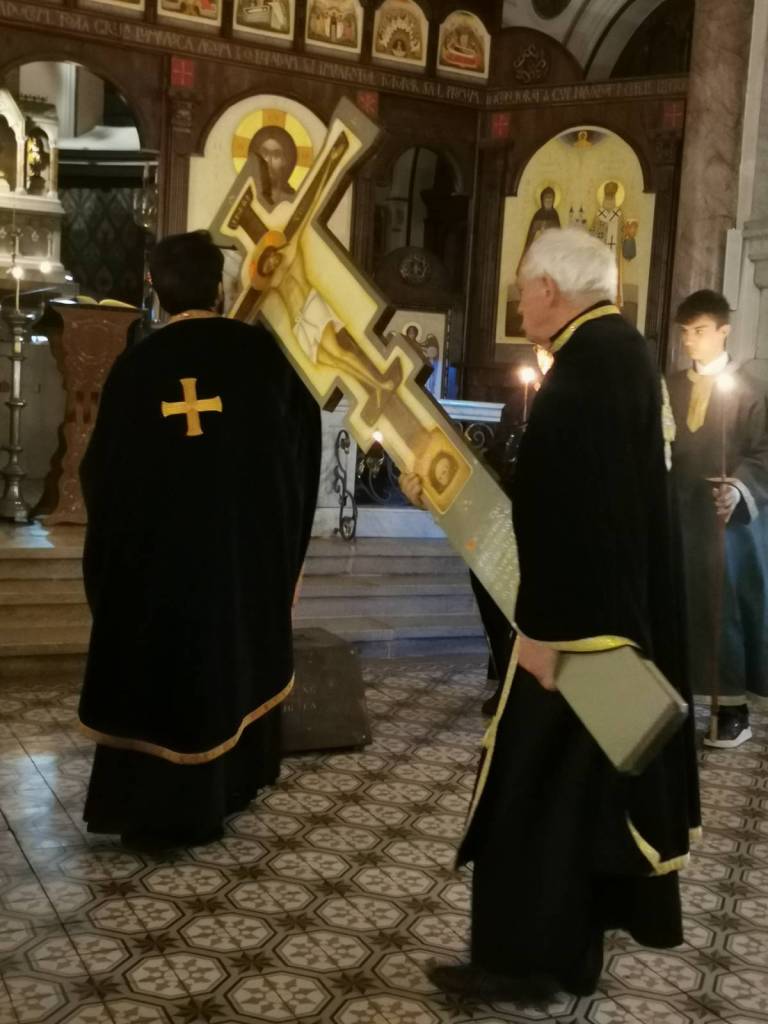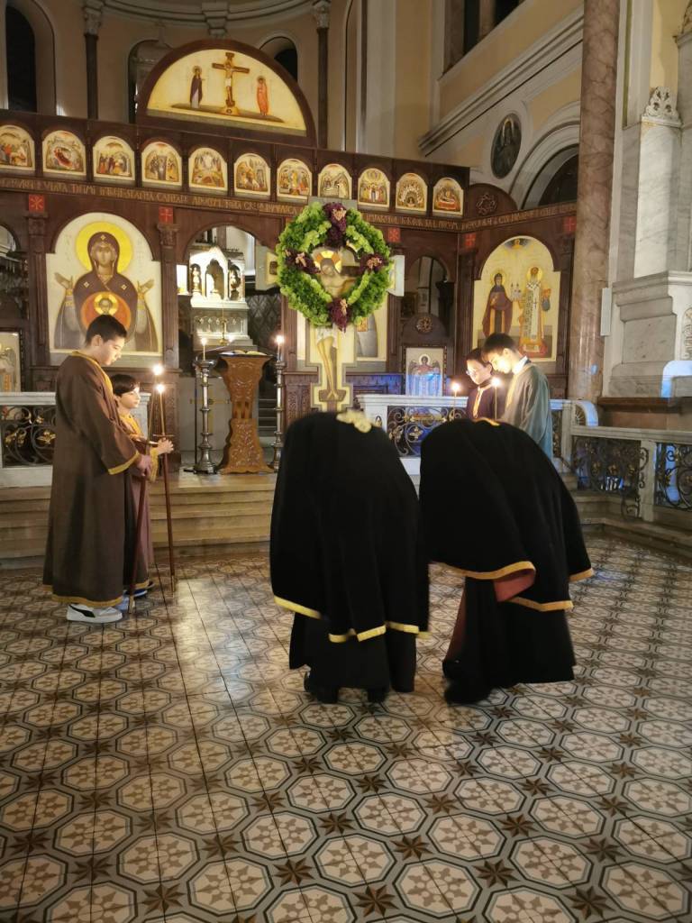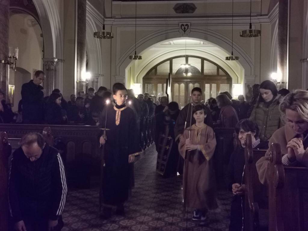 În Joia Mare, la sfârșitul Sfintei Liturghii a Sf. Vasile cel Mare, am săvârșit rânduiala spălării picioarelor, prevăzută în Triod.