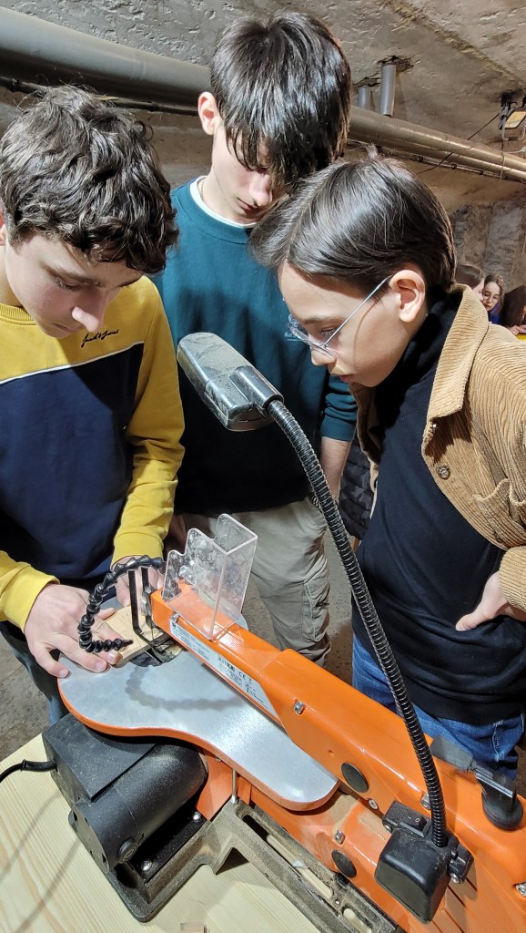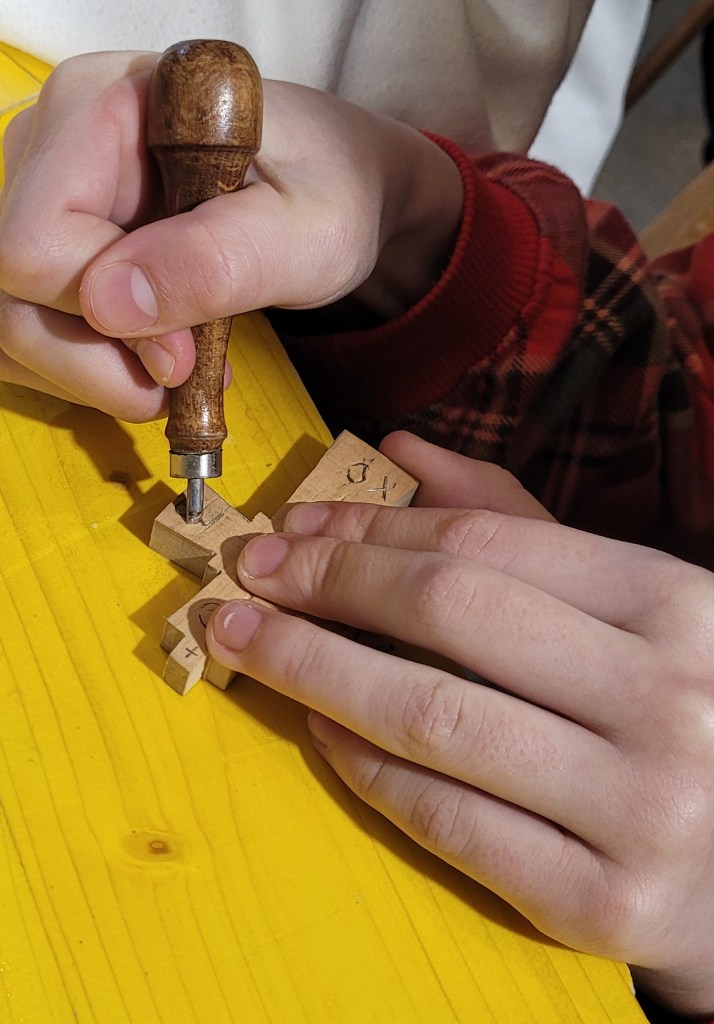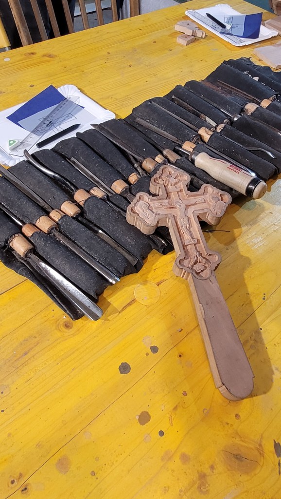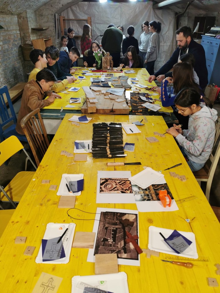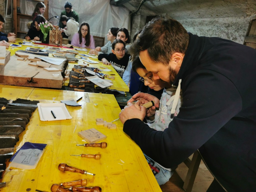 Atelierul de sculptură bizantină a fost coordonat de domnul Ilie Orelețchi, fiind dedicat copiilor de peste 10 ani. Mai întâi, copiii au aflat câteva lucruri esențiale privind sculptura bisericească și au putut studia diferite exemple de cruci sau scene sculptate în lemn din tradiția eclezială românească. Apoi au fost îndrumați să facă primii pași în a desena, trasa, decupa și sculpta câte o cruce pectorală în lemn de păr. A fost o experiență inedită! Crucile au fost expuse a doua zi, de Florii, în Biserică.