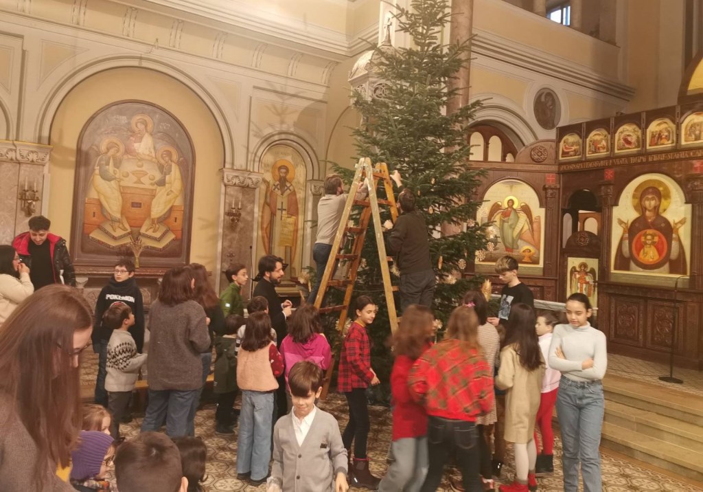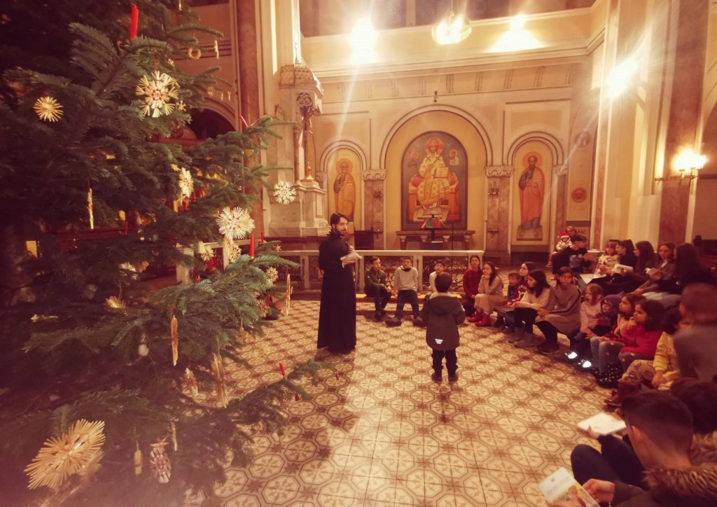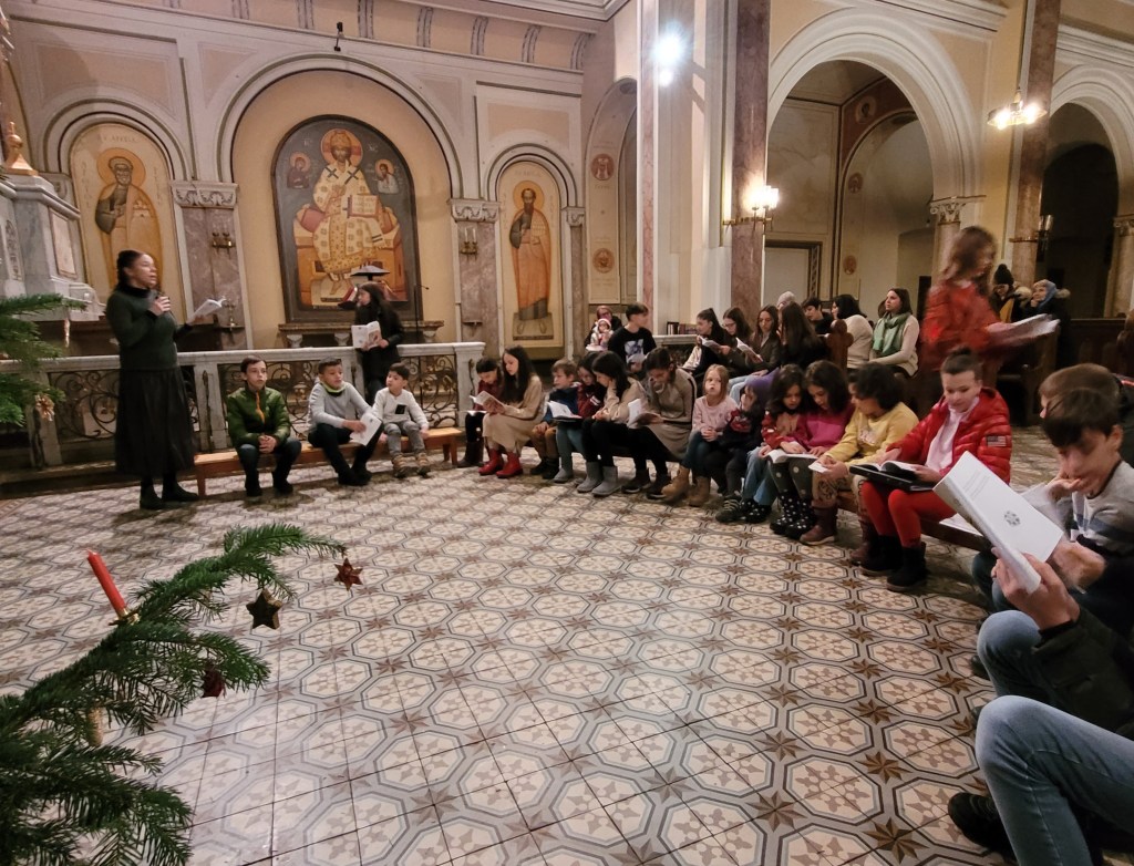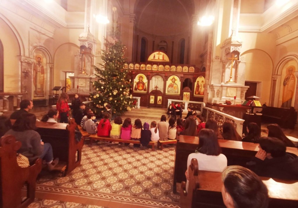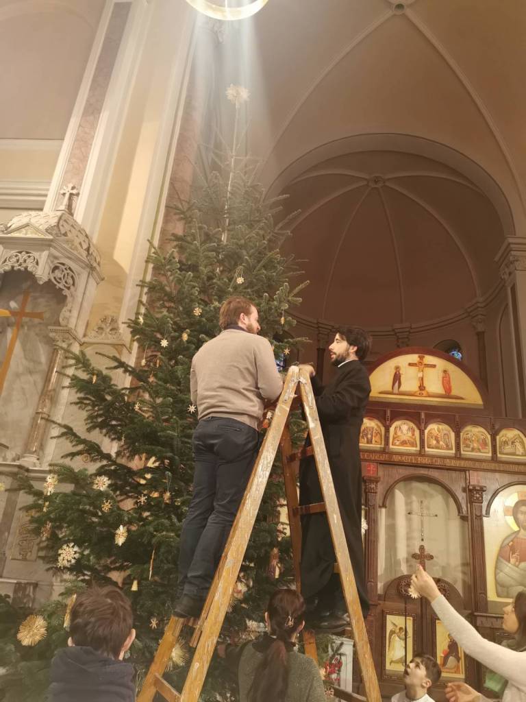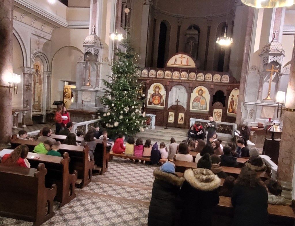 La final, colindul sfânt și bun a răsunat în Biserica romano-catolică din cartierul 15 al Vienei (biserica vecină cu Biserica Sf. Antonie), în fața a peste 150 de enoriași, majoritatea croați. Pr. Martin Rupprect, parohul bisericii, și ceilalți preoți și slujitori croați ne-au întâmpinat cu multă bucurie. Aici nu doar am colindat, dar am și dat lumina venită de la Betlehem mai departe, la creștinii romano-catolici – semn al cinstirii comune pentru Taina Nașterii Domnului și a Născătoarei de Dumnezeu.