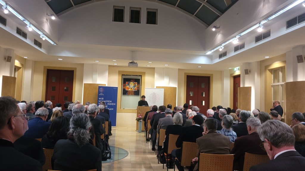 Pr. Ioan Moga a subliniat diferitele merite, trecute și prezente, ale Fundației Pro Oriente, arătând că sub președinția dl. Kloss, ea a umplut goluri de dialog și a continuat să construiască punți între lumea credinței și lumea academică, între centru și periferie, între generația tânără și generațiile mai în vârstă. În perspectiva unui sfârșit al războiului din Ucraina și a unei păci drepte și durabile, el a arătat că fundația Pro Oriente va putea să își pună în lucrare expertiza sa din proiectul „Healing of wounded memories“. De asemenea, el l-a felicitat pe președintele de până acum pentru faptul că, prin proiectul „Listening to the East“ a arătat, în cadrul așa numitului proces sinodal romano-catolic, ce tradiție și experiență bogată are Biserica Ortodoxă în domeniul sinodalității, din care sunt multe de învățat. Totodată pr. Ioan Moga a vorbit despre polifonia vie a diferitelor Biserici și parohii ortodoxe din Austria, dar și despre aportul pe care le aduc ele, prin diferite activități, la integrarea enoriașilor lor în societatea austriacă.